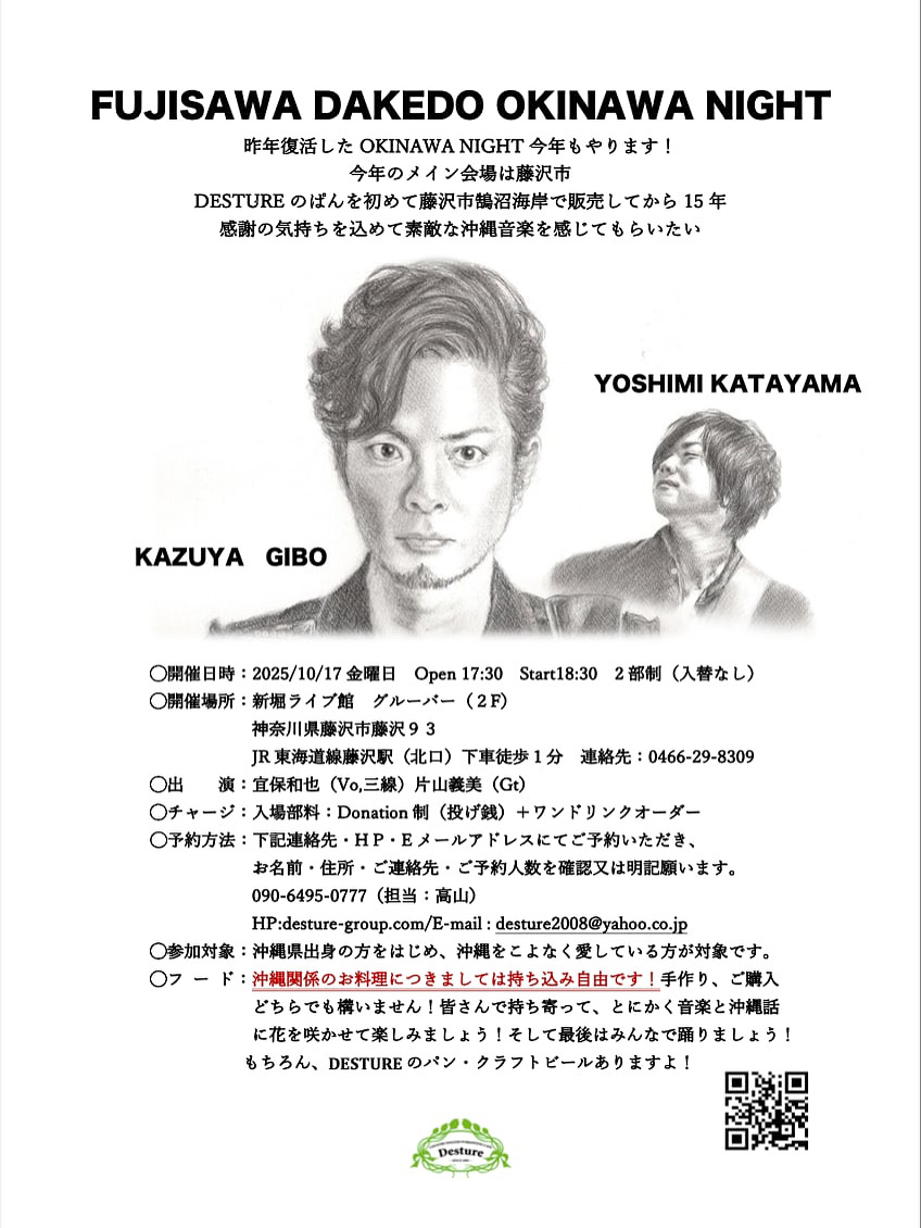 ※沖縄民謡、八重山民謡を中心にオリジナル曲、沖縄あるあるトークを交えたライブになります。